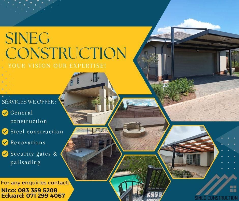 Whether you're improving your outdoor living area, upgrading your home’s exterior, or securing your property with robust steel systems, Sineg Construction is your trusted partner for dependable, professional construction services.